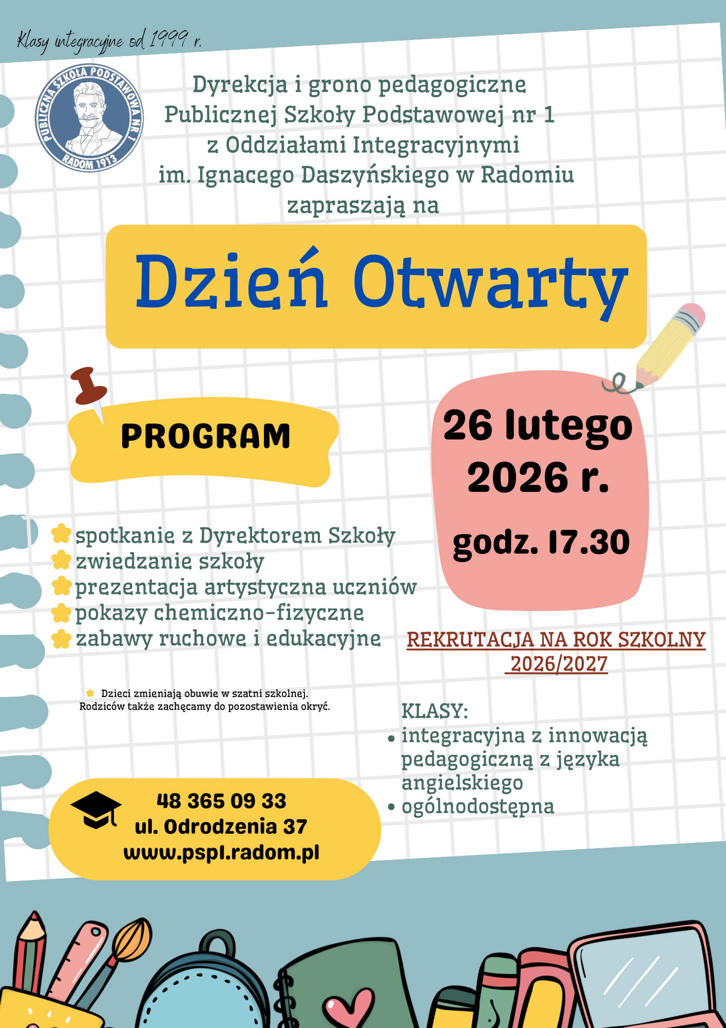 Rekrutacja do klas pierwszych publicznych szkół podstawowych prowadzonych przez Gminę Miasta Radomia na rok szkolny 2026/2027