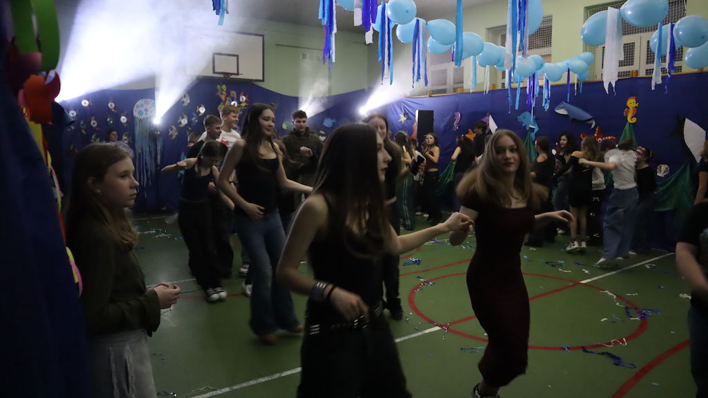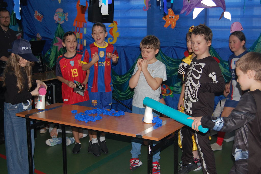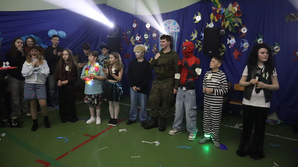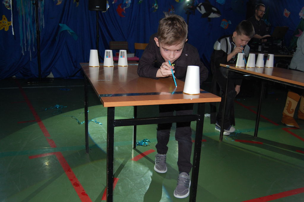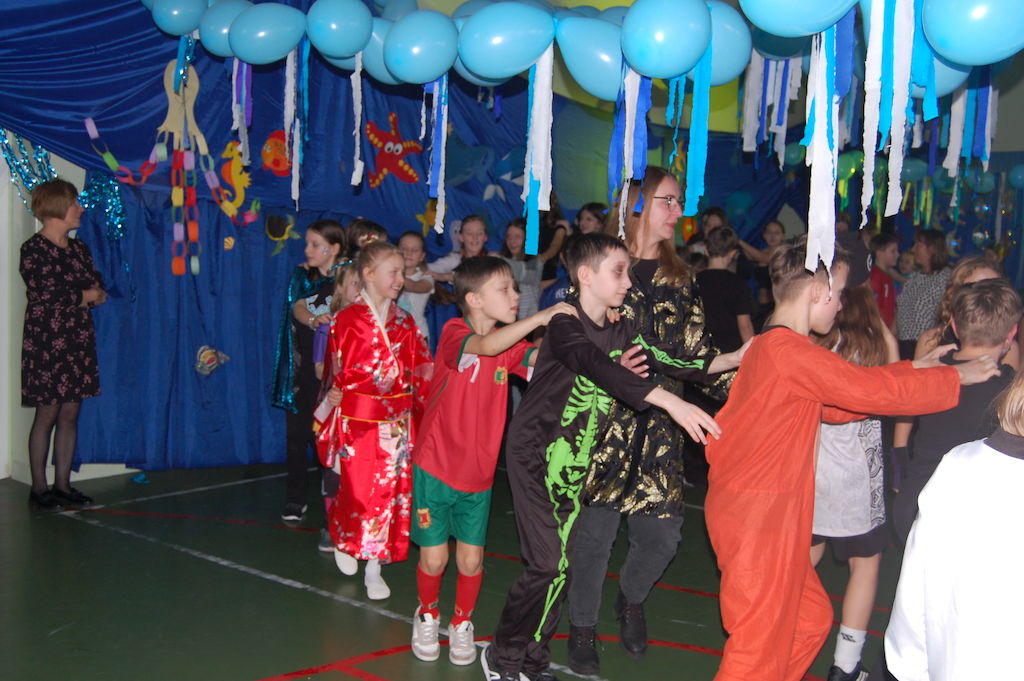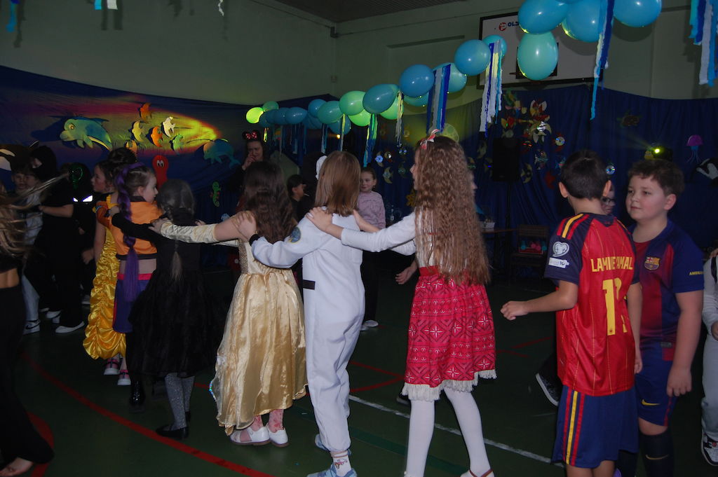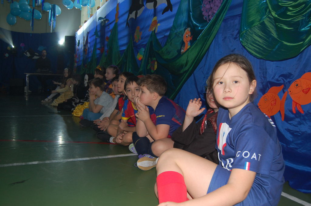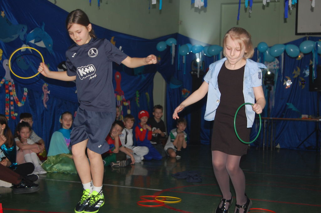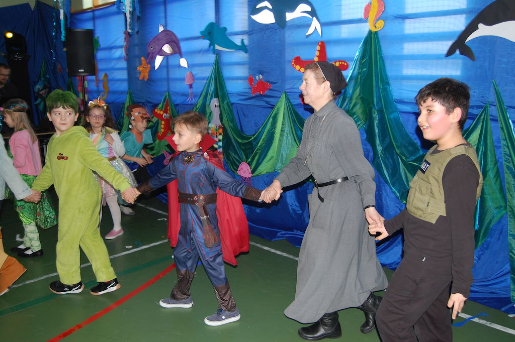 Tak właśnie było 10 lutego – mała sala sportowa, pięknie udekorowana, zupełnie zmieniła swoje oblicze i stała się prawdziwą salą balową. Przed południem bawiły się klasy 1–3, natomiast po południu parkiet należał do uczniów klas 4–6. Było to niezwykłe wydarzenie, pełne barw, pomysłowości i beztroskiej radości, które na długo pozostanie