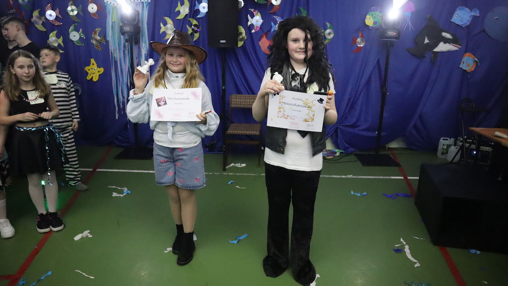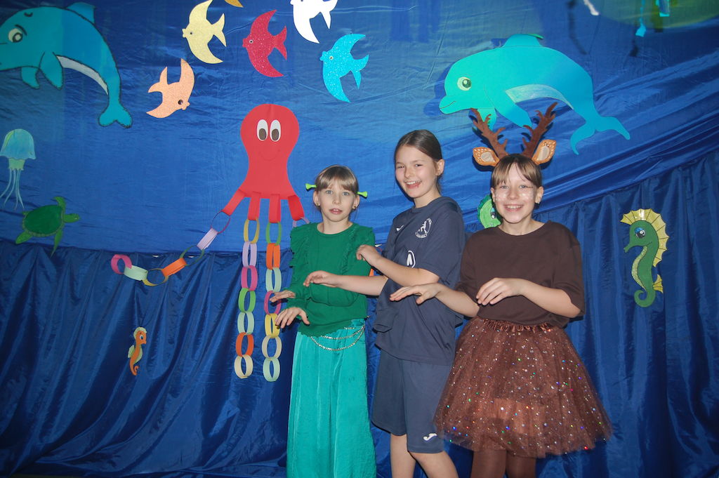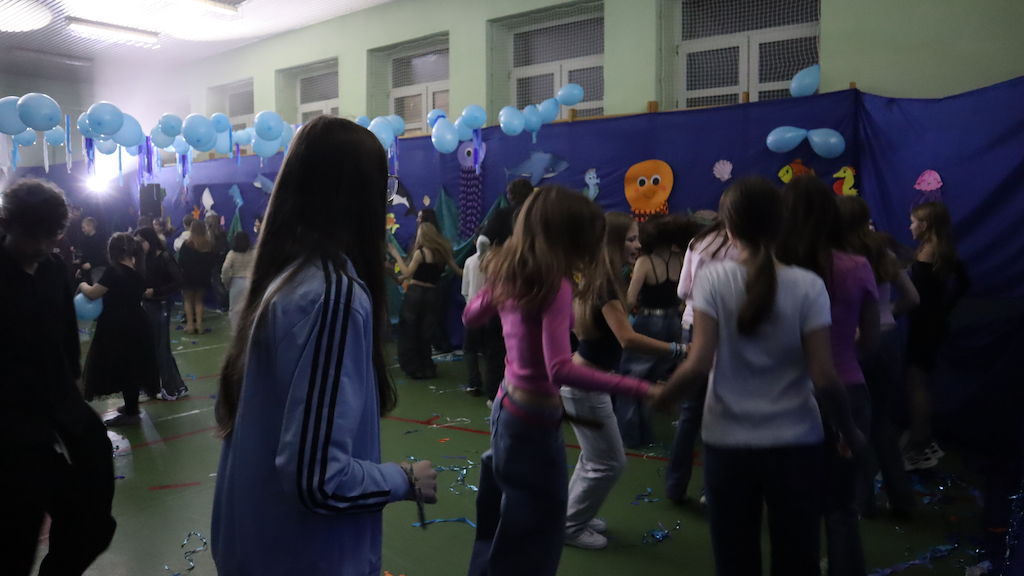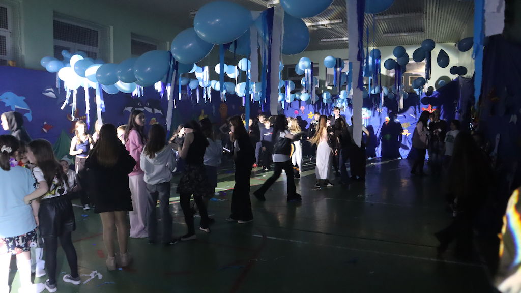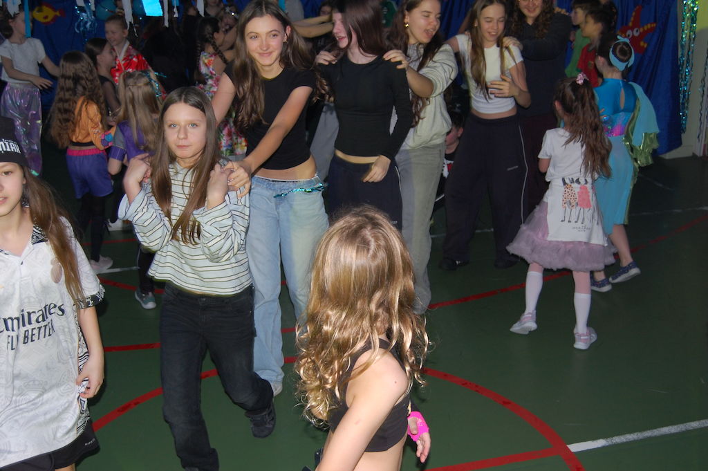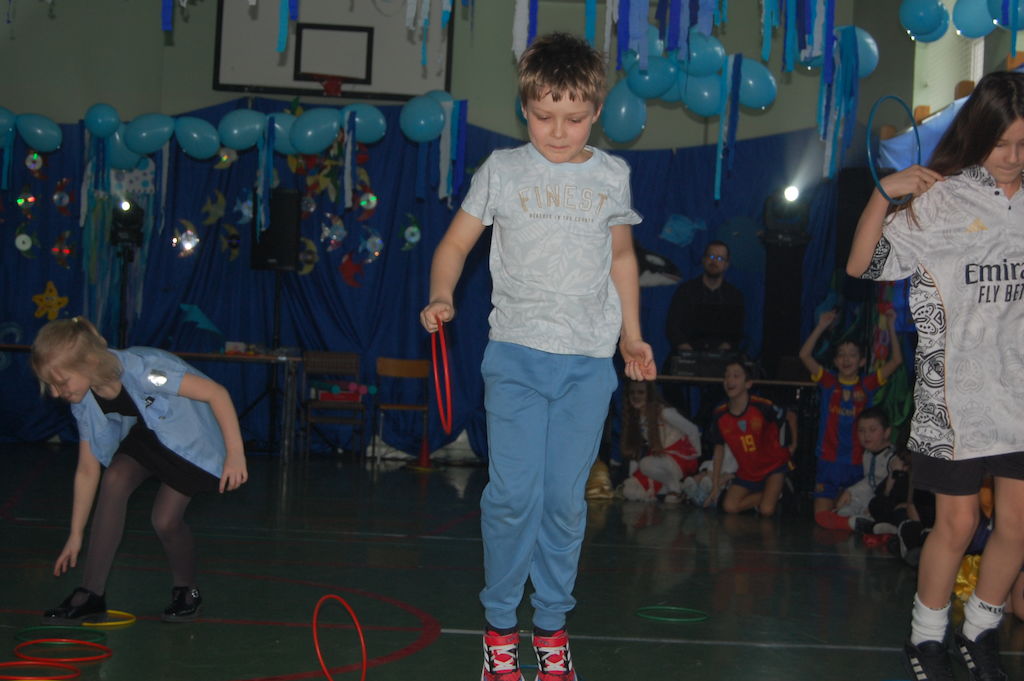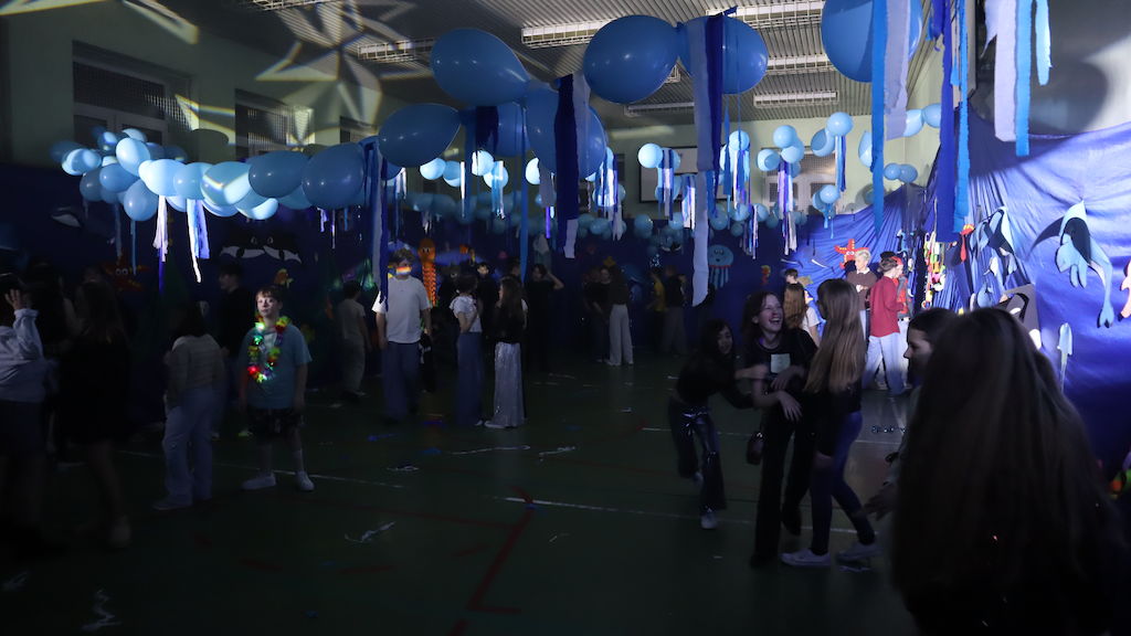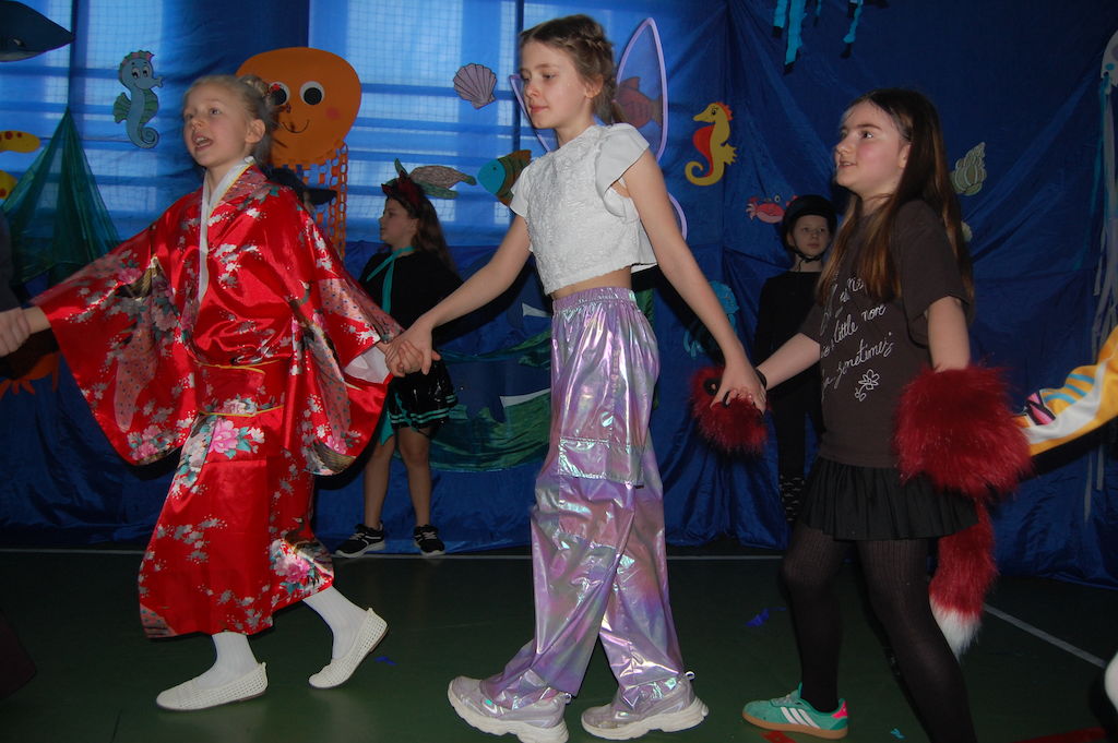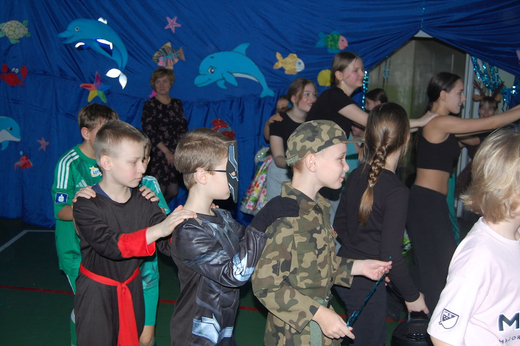 Tak właśnie było 10 lutego – mała sala sportowa, pięknie udekorowana, zupełnie zmieniła swoje oblicze i stała się prawdziwą salą balową. Przed południem bawiły się klasy 1–3, natomiast po południu parkiet należał do uczniów klas 4–6. Było to niezwykłe wydarzenie, pełne barw, pomysłowości i beztroskiej radości, które na długo pozostanie