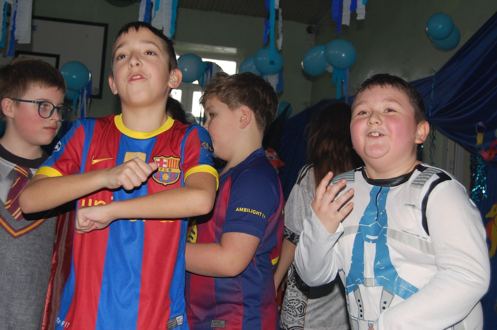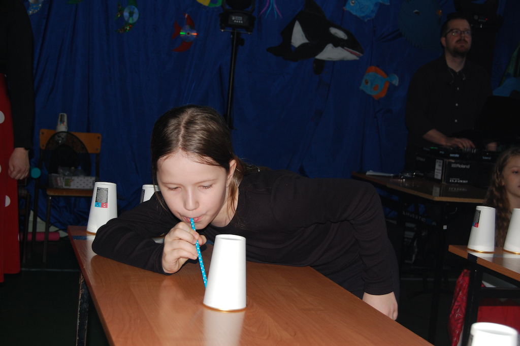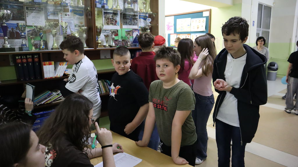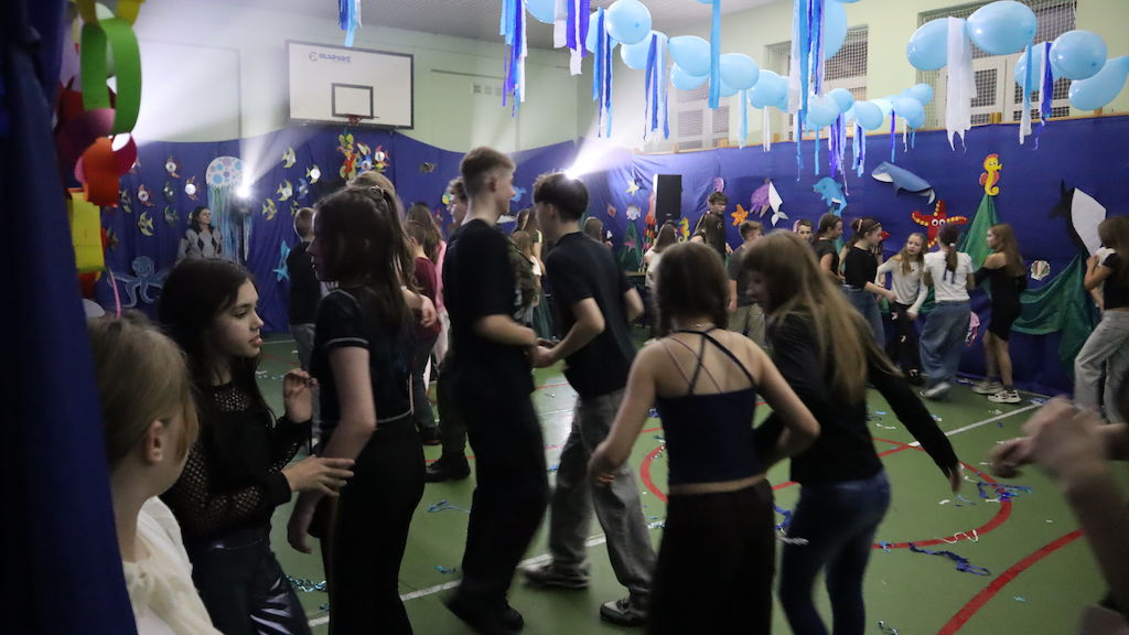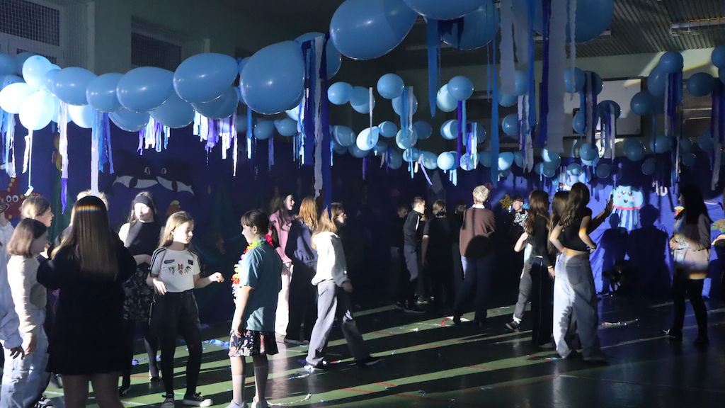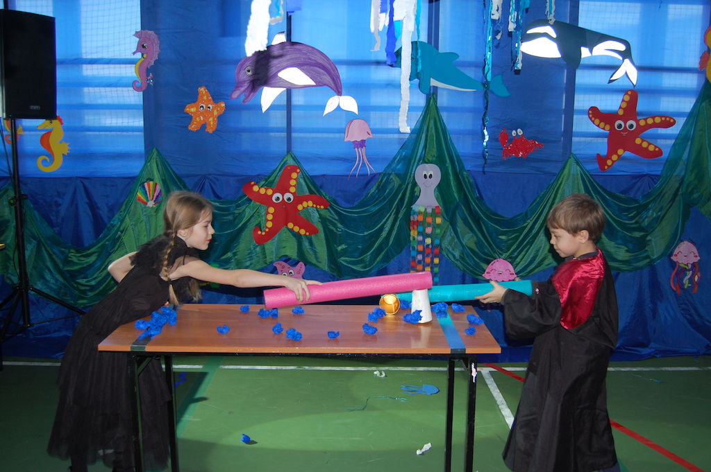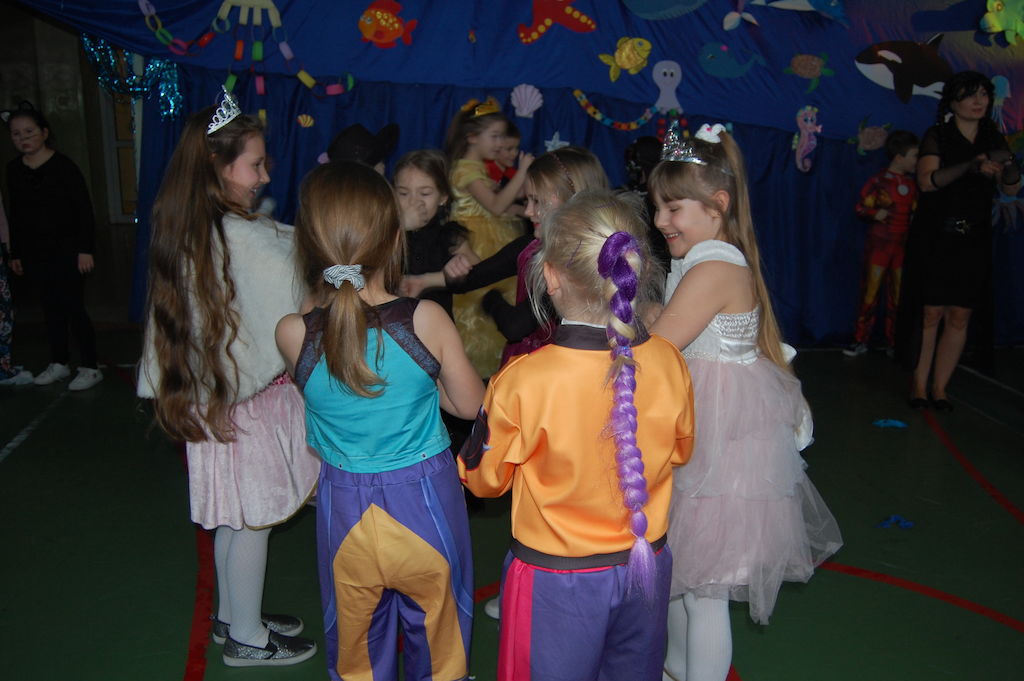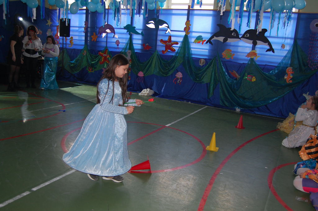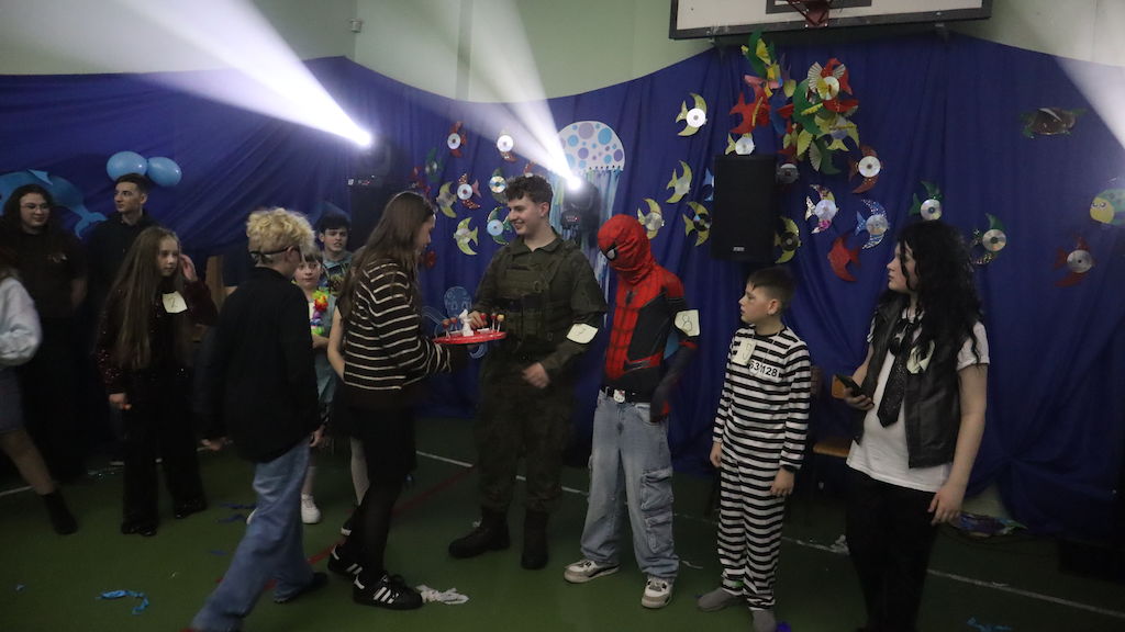 Tak właśnie było 10 lutego – mała sala sportowa, pięknie udekorowana, zupełnie zmieniła swoje oblicze i stała się prawdziwą salą balową. Przed południem bawiły się klasy 1–3, natomiast po południu parkiet należał do uczniów klas 4–6. Było to niezwykłe wydarzenie, pełne barw, pomysłowości i beztroskiej radości, które na długo pozostanie