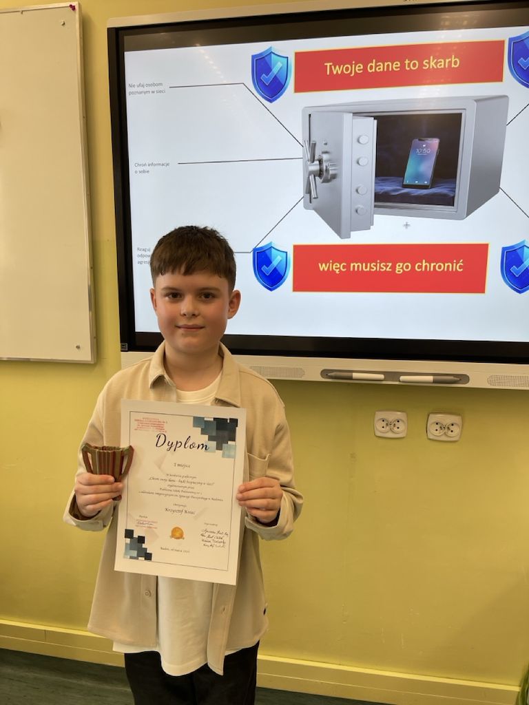 Odbył się szkolny konkurs dla uczniów klas 4-8 „Chroń swoje dane – bądź bezpieczny w sieci”, w których I miejsca zdobyli: