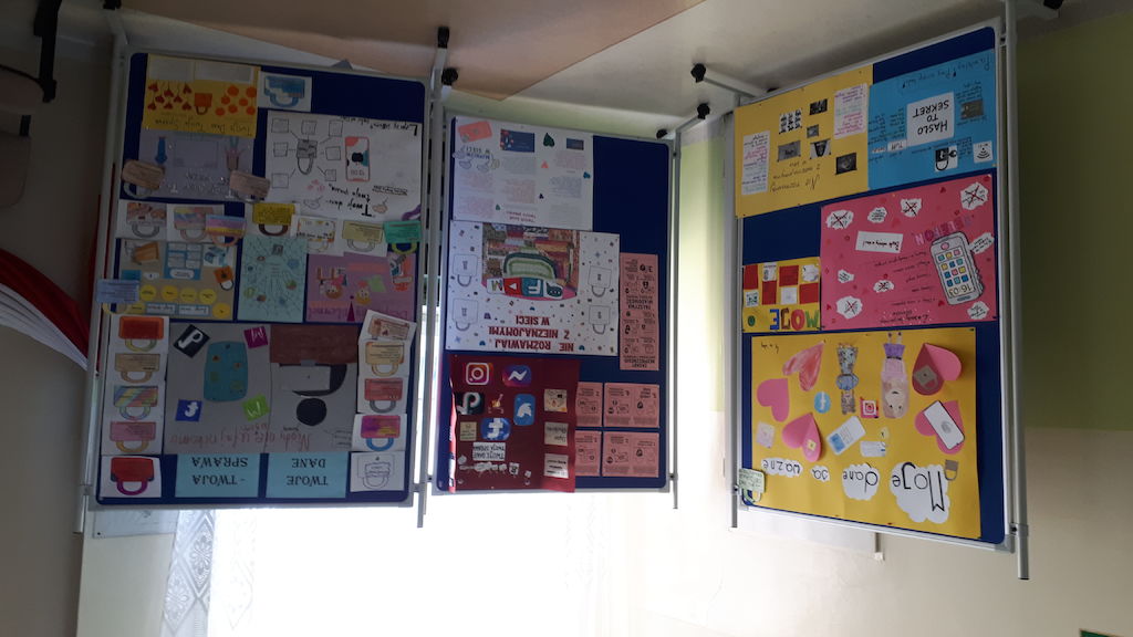Plakaty zostały wyeksponowane na korytarzach szkolnych, aby każdy mógł zapoznać się