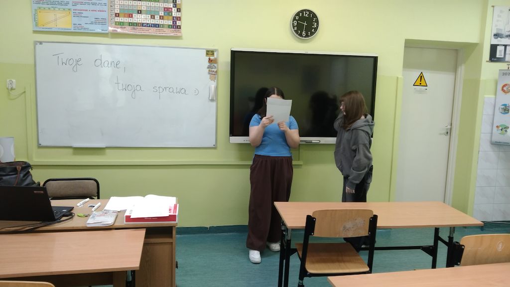 z wychowawcą. Poruszono m.in. tematy: jak tworzyć silne hasła i dlaczego „nieznajomy” w sieci nie zawsze ma dobre zamiary, debaty o cyberbezpieczeństwie: Analizujemy realne zagrożenia, takie jak phishing czy kradzież tożsamości, jak na nie reagować.